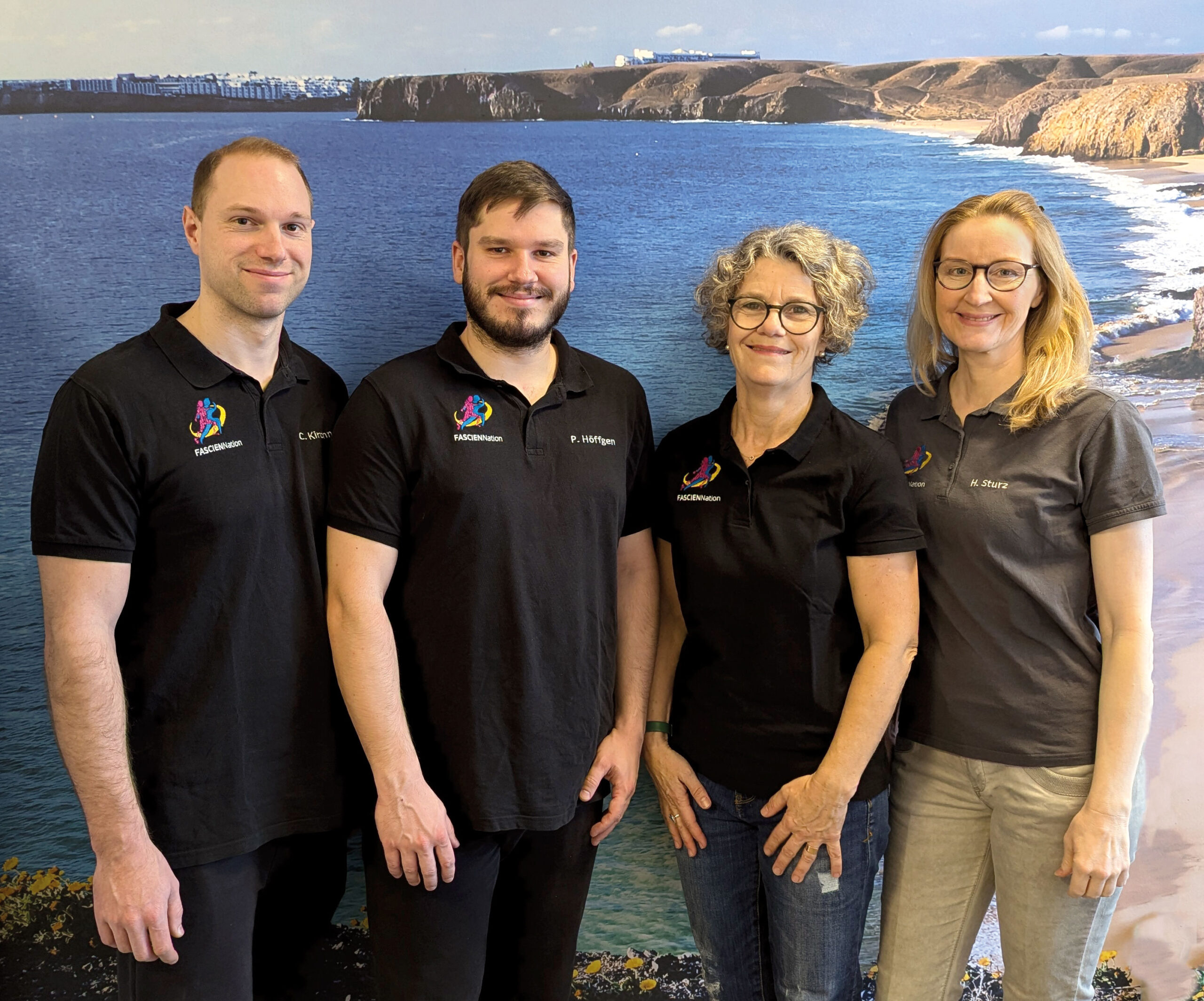 Von links: Christian Kirchner (Physiotherapeut, Fasziopath), Philipp Höffgen (Physiotherapeut, Manueller Faszientherapeut), Andrea Zurek (Osteopathin, Physiotherapeutin) und Helga Sturz (Praxismanagerin, Grafikerin, Rezeption)